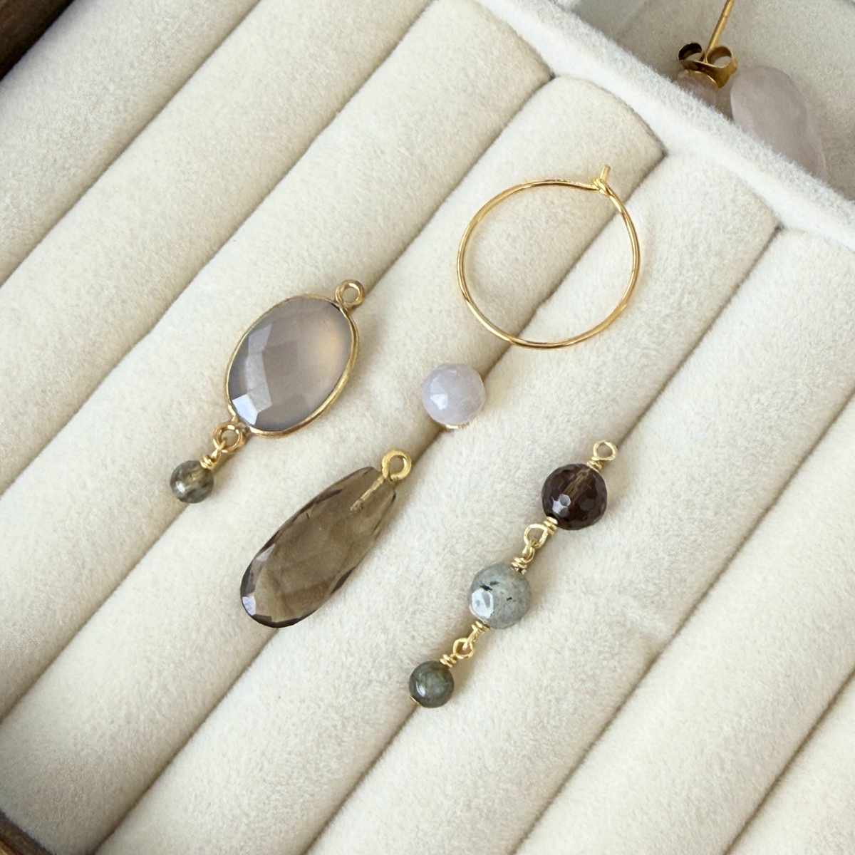 Da jeg arbejder med ægte sten er det meget svært at lave to ens øreringe, medmindre jeg har dem liggende foran mig. Der kan være variationer i farver og strukturer som gør det svært. Jeg vil altid gøre mit bedste, men send mig en besked, hvis du tidligere har bestilt et smykke og ønsker et magen til.