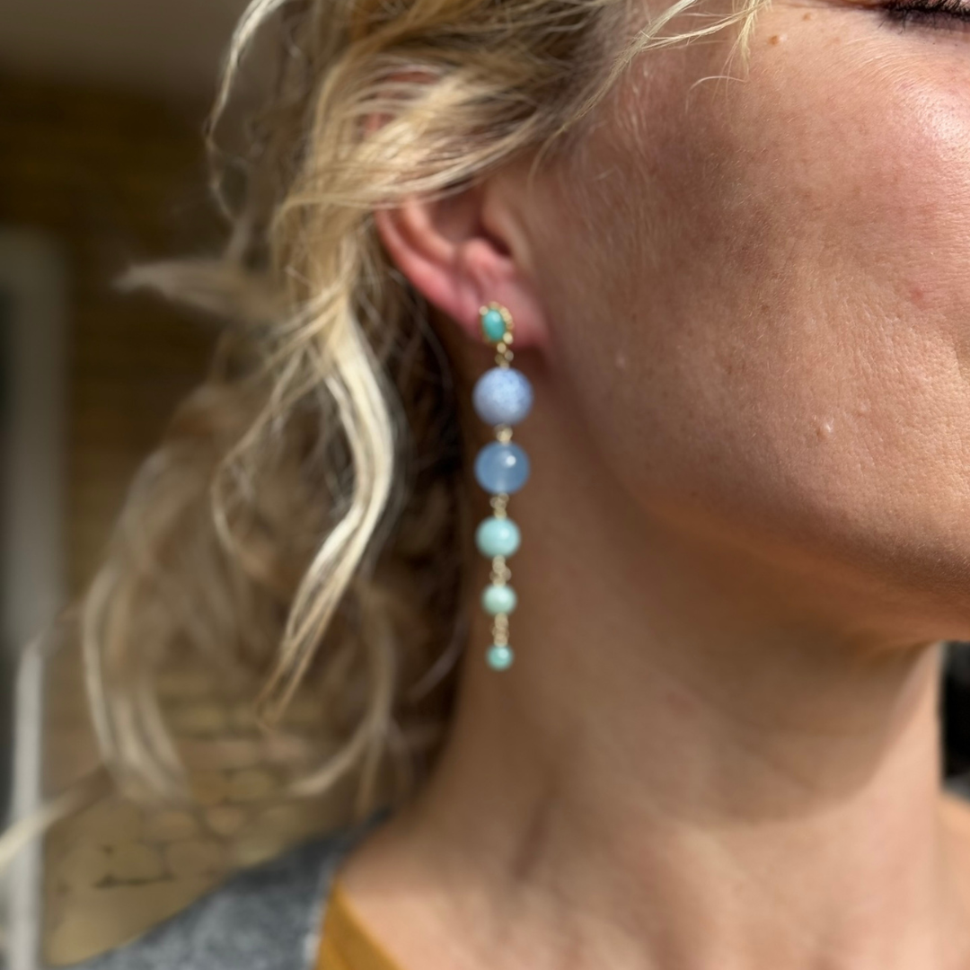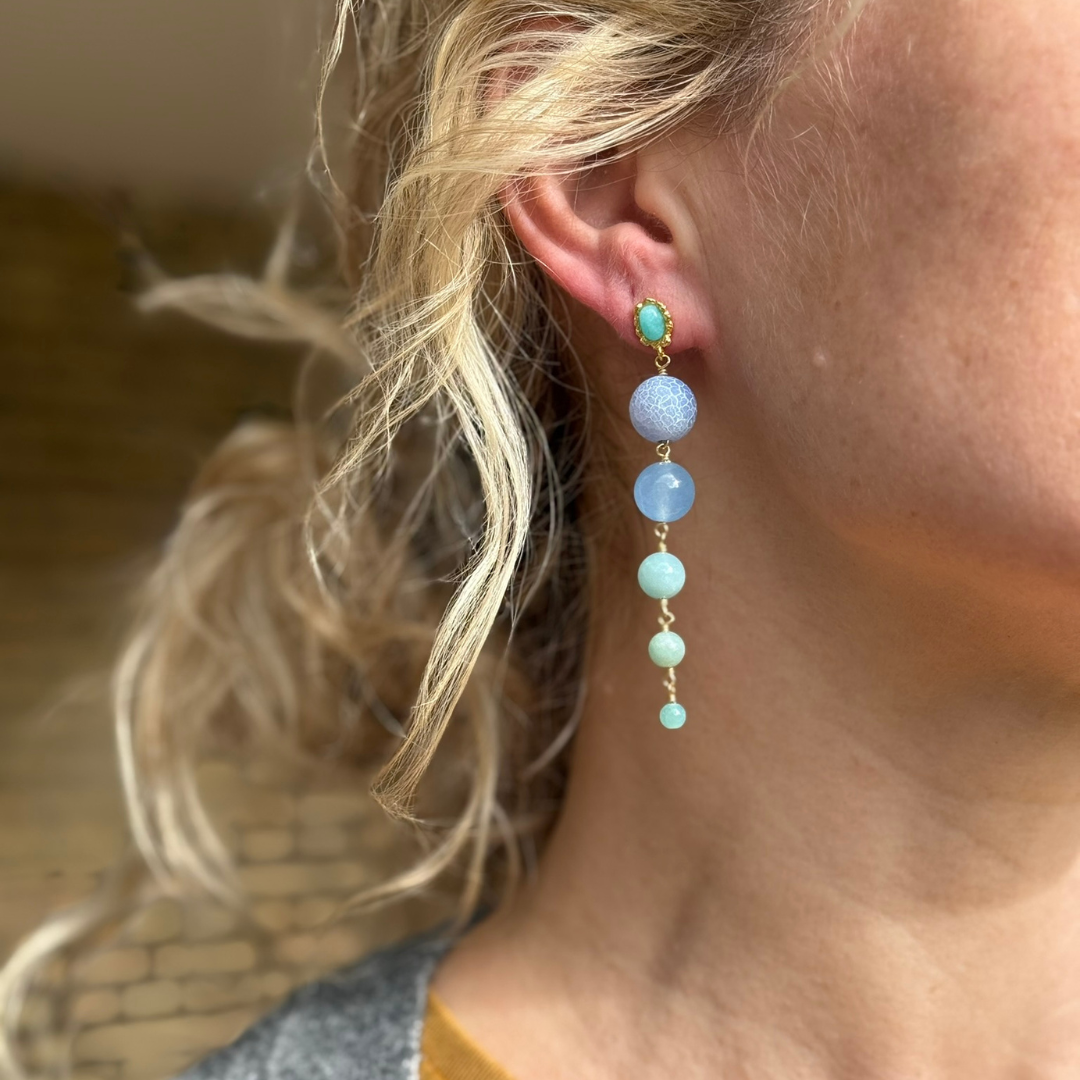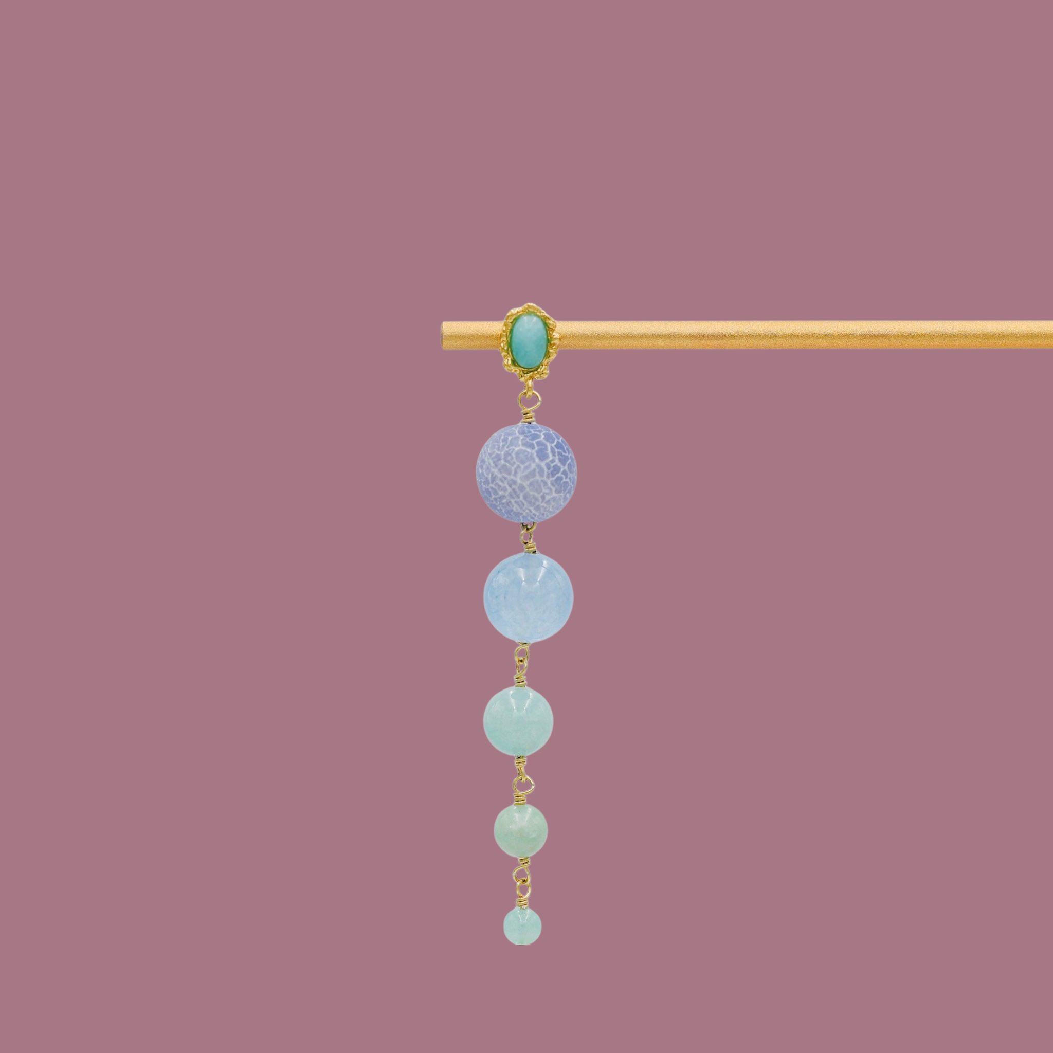 Et smykke, der emmer af ro og lethed. One of a Globe kombinerer den blide blå amazonit med den jordnære agat og skaber et subtilt spil af lyseblå og neutrale toner. Resultatet er en elegant ørering med et friskt og tidløst udtryk.