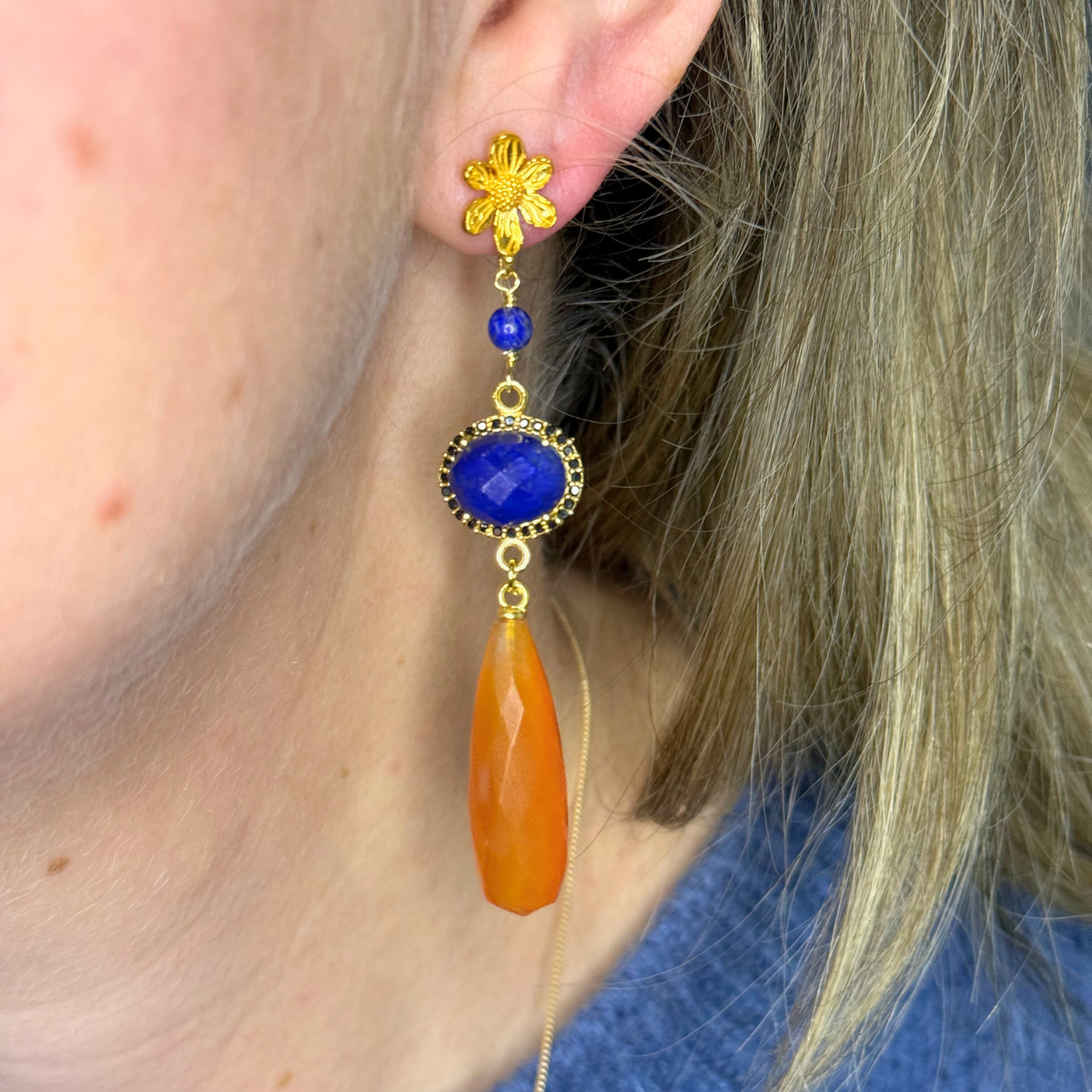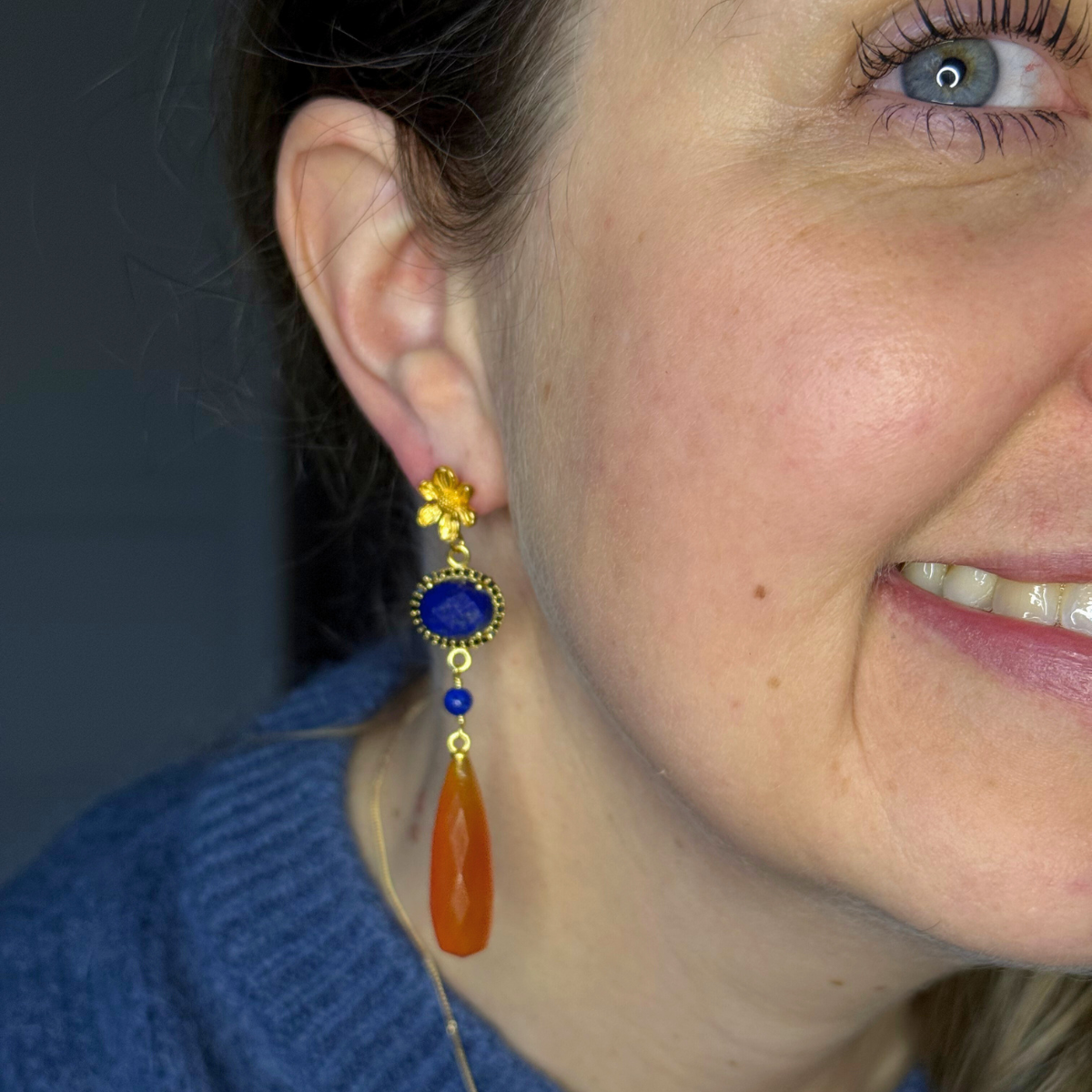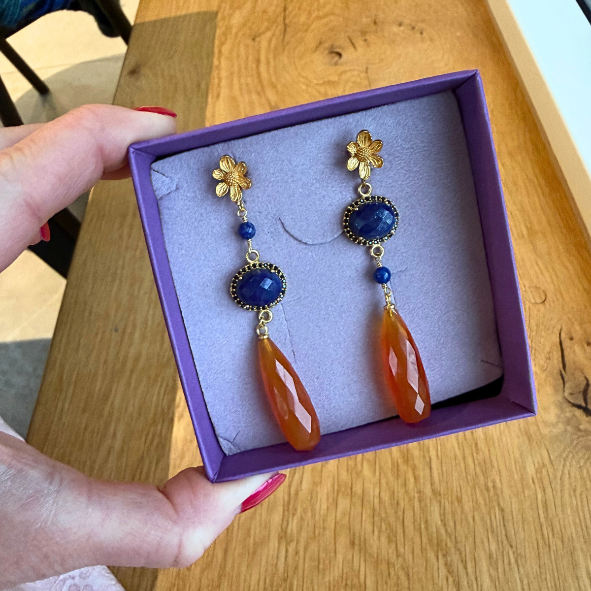 Et sæt der er så LÆKKKERT i virkeligheden. Lyset var ikke rigtig med mig, da jeg skulle tage billede af de smukke farver her. Den smukke mørkeblå lapis Lazuli i samspil med den orange karneol er virkelig flot.