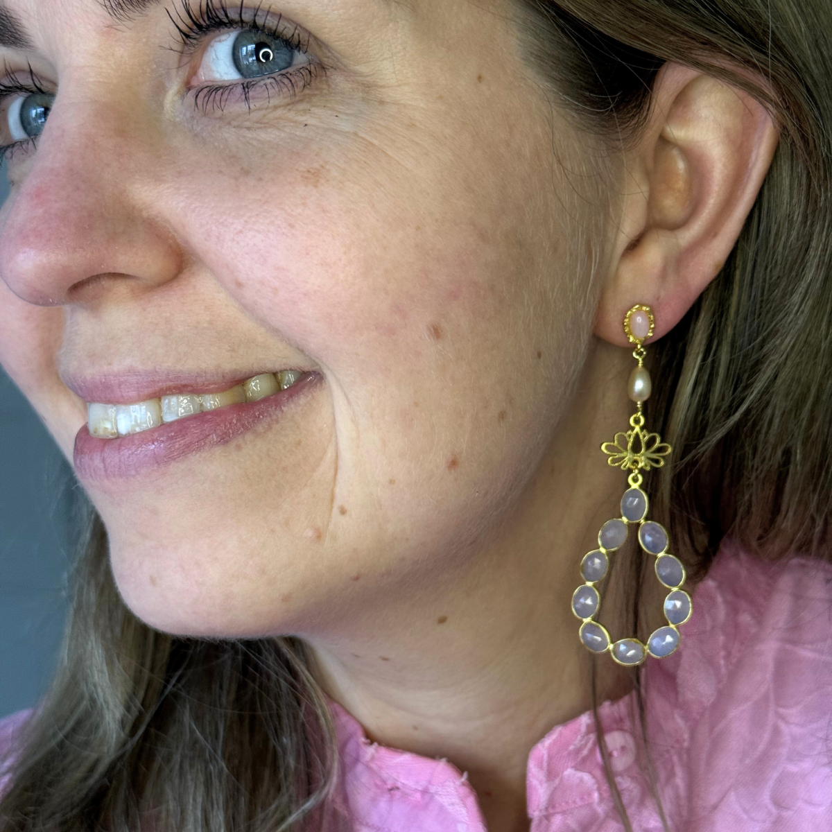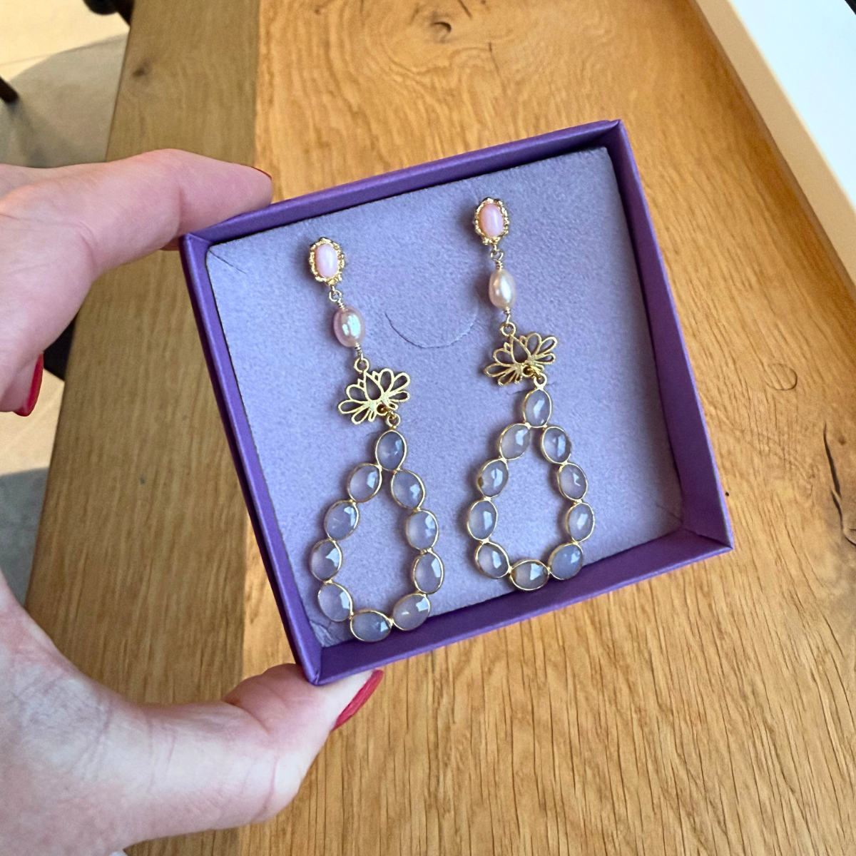 Da jeg arbejder med ægte sten er det meget svært at lave to ens øreringe, medmindre jeg har dem liggende foran mig. Der kan være variationer i farver og strukturer som gør det svært. Jeg vil altid gøre mit bedste, men send mig en besked, hvis du tidligere har bestilt et smykke og ønsker et magen til.