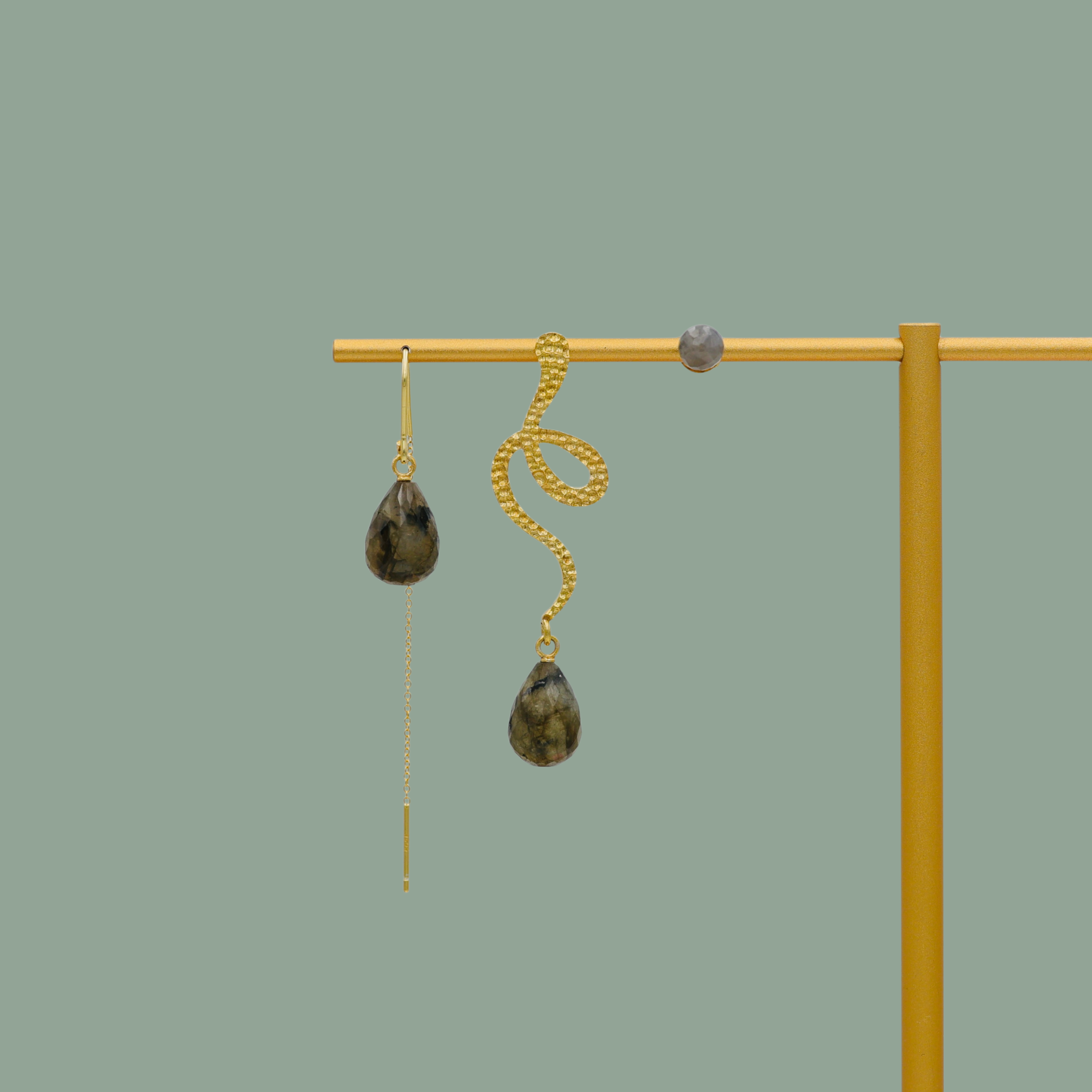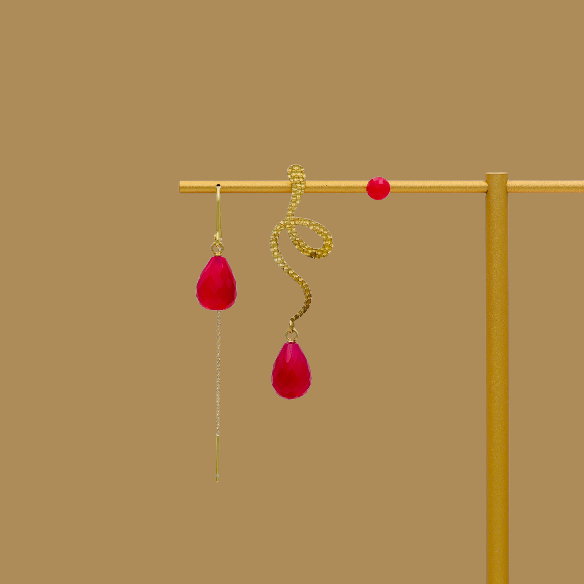 De gyldne kæder og detaljer giver øreringene et elegant, moderne udtryk, mens stenene tilfører personlighed og naturlig skønhed. Uanset om du vælger intense røde toner, rolige blå nuancer eller jordnære grønne farver, får du et smykke, der skiller sig ud med sin unikke sammensætning.